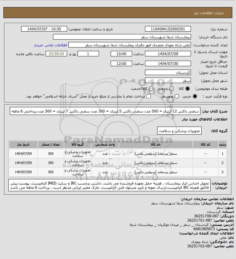نام دستگاه خریدار:بیمارستان شفا شهرستان سقز