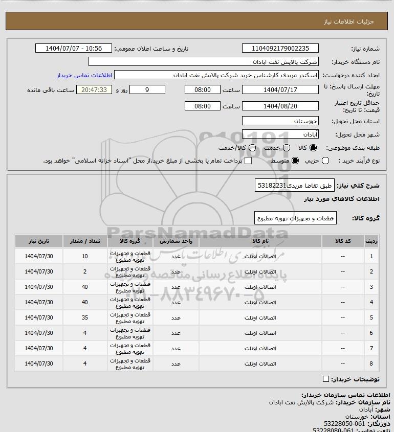 نام دستگاه خریدار:شرکت پالایش نفت ابادان