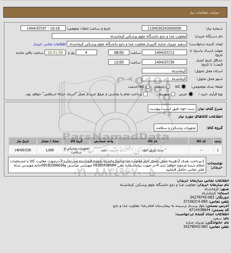 شرح کلی نیاز: ست خون طبق لیست پیوست