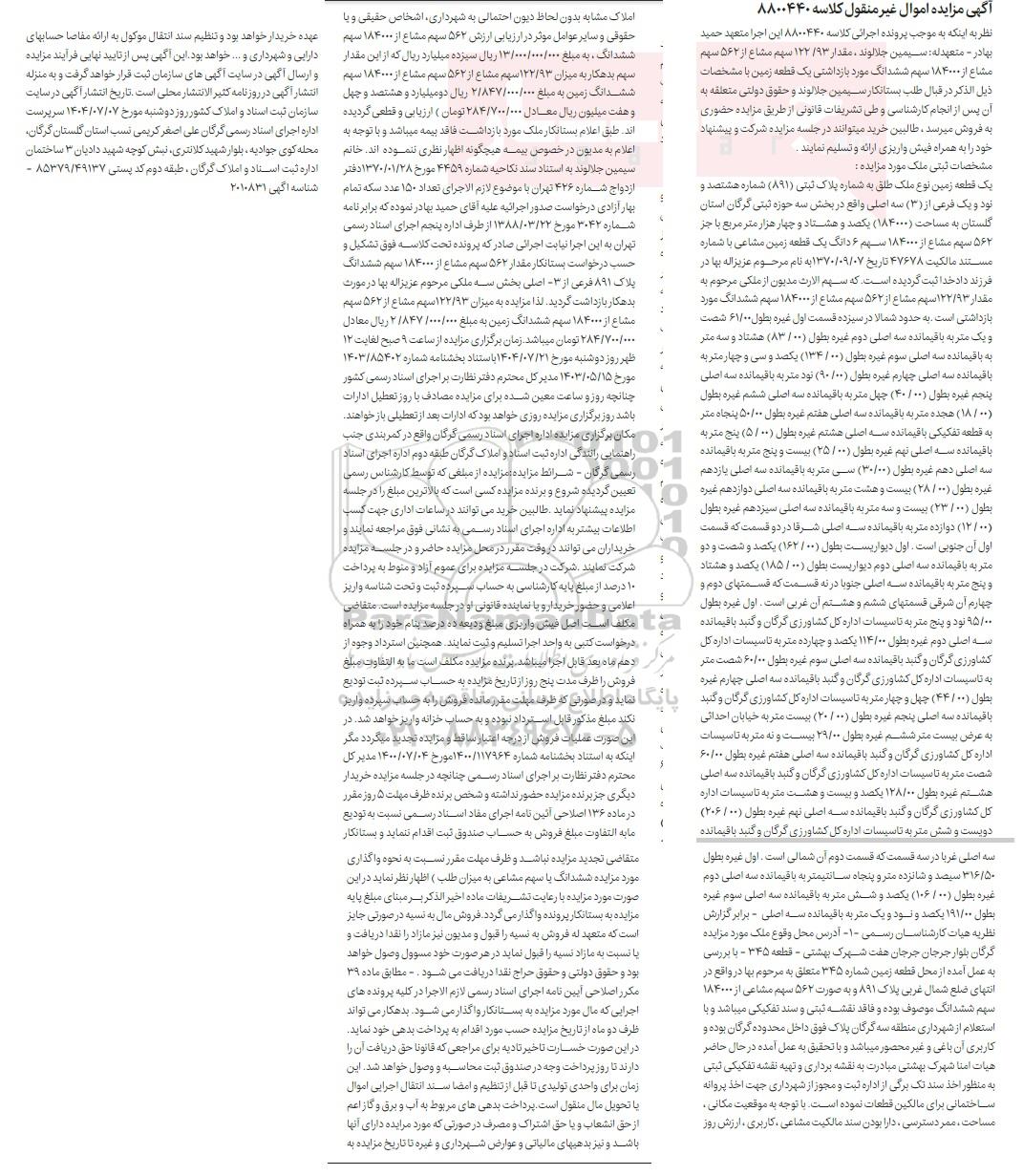 محل مزایده: اداره ثبت اسناد و املاک گرگان