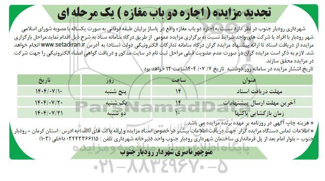 تجدید مزایده (اجاره دو باب مغازه) یک مرحله ای