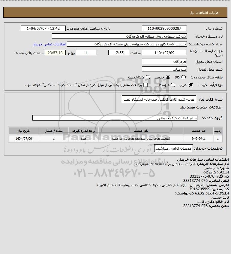 نام سازمان خریدار: شرکت سهامی برق منطقه ای هرمزگان