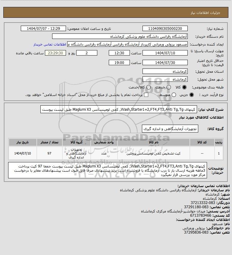 نام دستگاه خریدار:آزمایشگاه رفرانس دانشگاه علوم پزشکی کرمانشاه