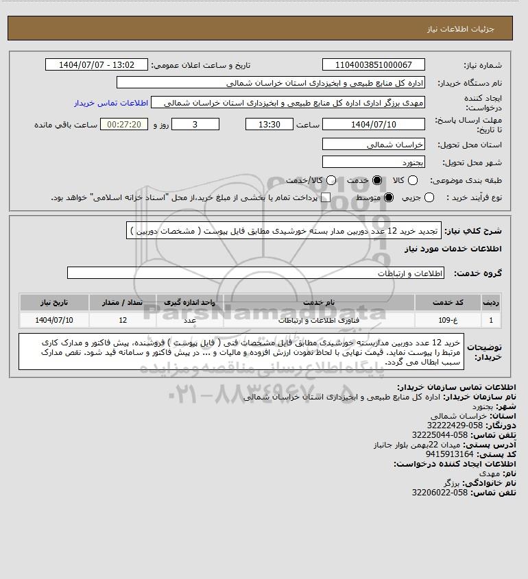 نام دستگاه خریدار:اداره کل منابع طبیعی و ابخیزداری استان خراسان شمالی