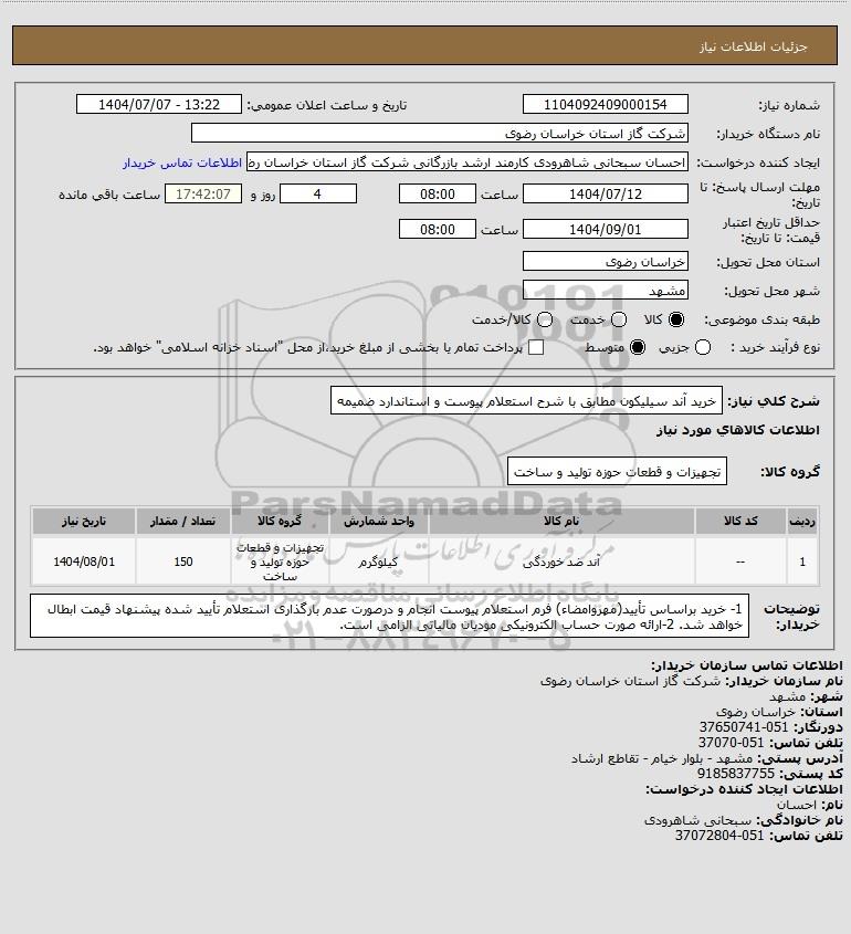 نام سازمان خریدار: شرکت گاز استان خراسان رضوی