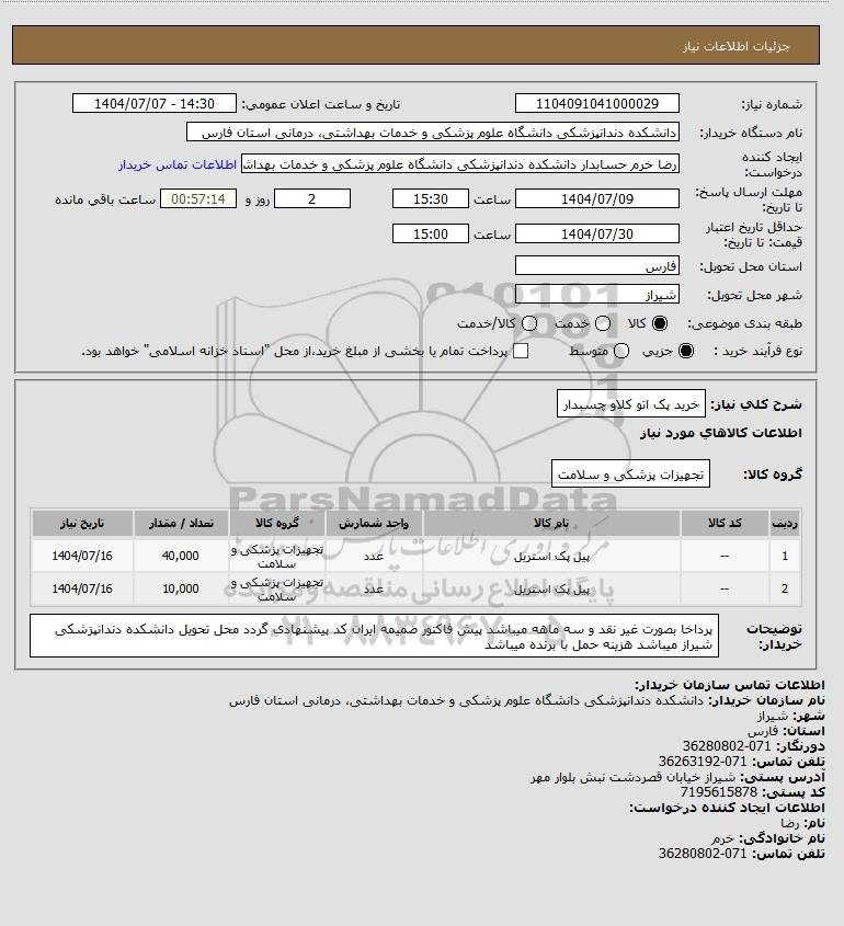 نام دستگاه خریدار:دانشکده دندانپزشکی دانشگاه علوم پزشکی و خدمات بهداشتی، درمانی استان فارس