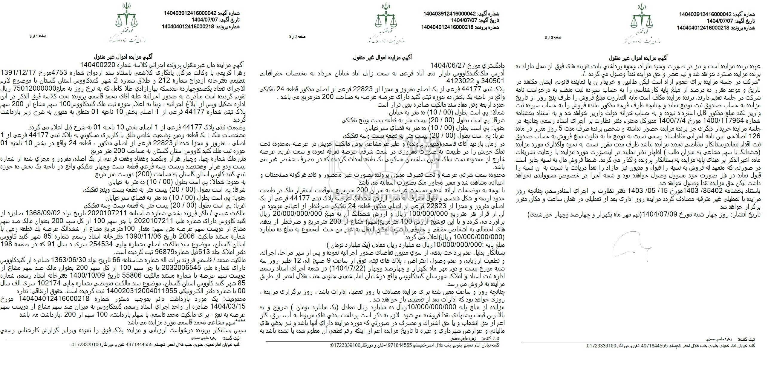 1 مزایده فروش تعدادی از املاک 9818193 1404/08/18 new special not payed سایر