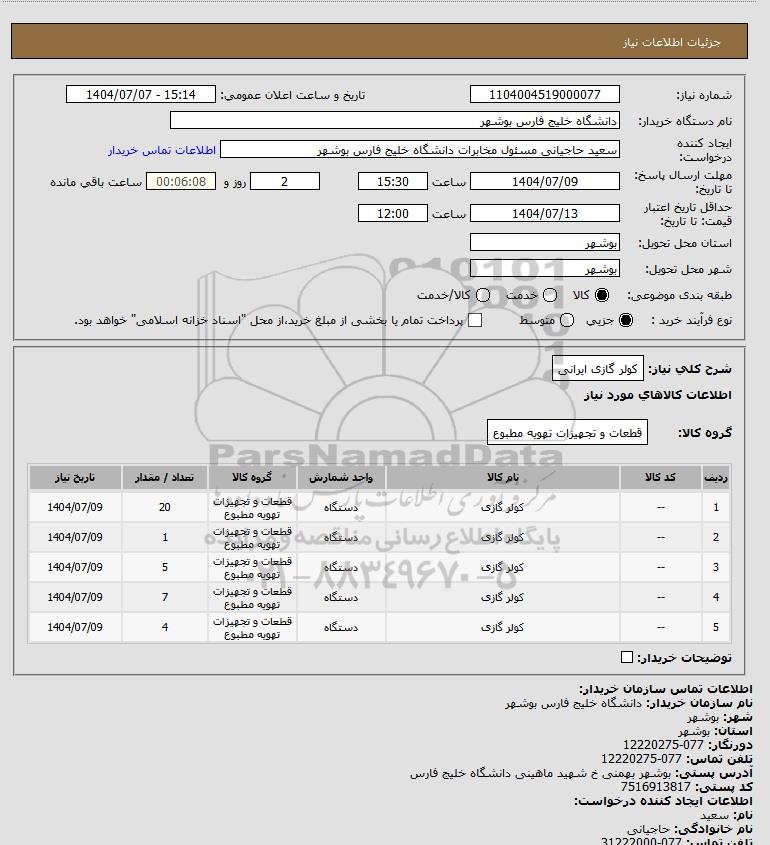 استعلام کولر گازی ایرانی, استعلام کولر گازی ایرانی