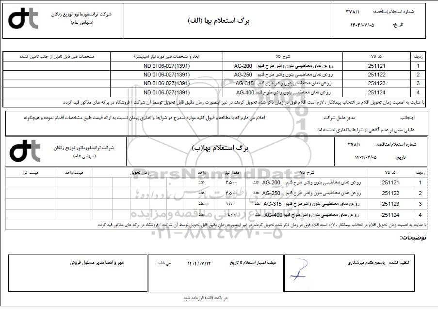 استعلام، مناقصه روغن نمای مغناطیسی بدون واشر طرح قدیم 200-AG..., استعلام، مناقصه روغن نمای مغناطیسی بدون واشر طرح قدیم 200-AG...