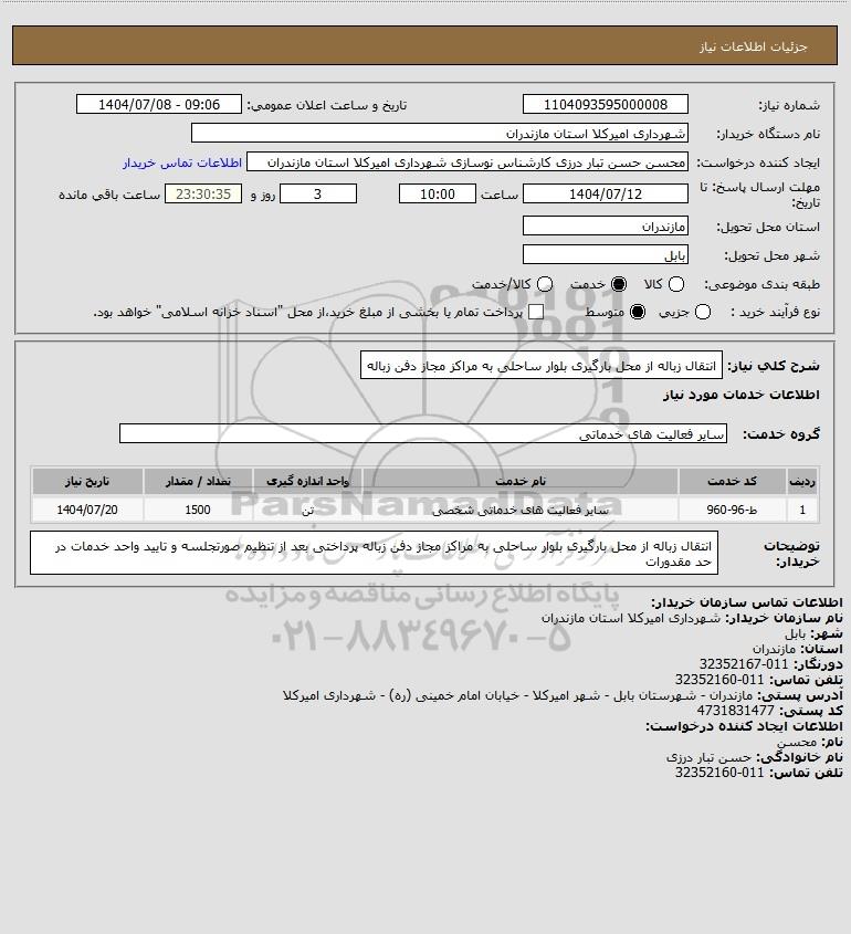 نام سازمان خریدار: شهرداری امیرکلا استان مازندران