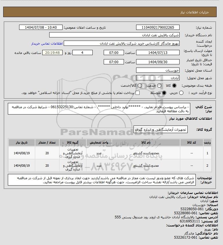نام دستگاه خریدار:شرکت پالایش نفت ابادان