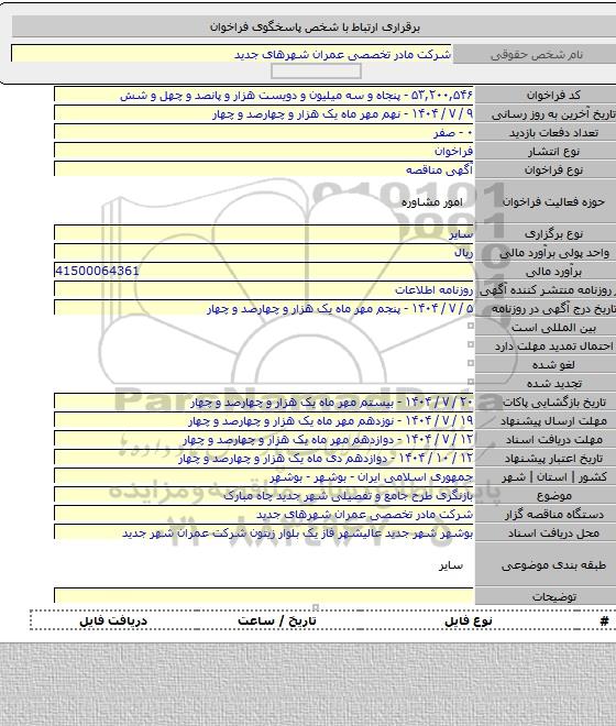 مناقصه بازنگری طرح جامع و تفصیلی شهر جدید چاه مبارک, مناقصه, بازنگری طرح جامع و تفصیلی شهر جدید چاه مبارک