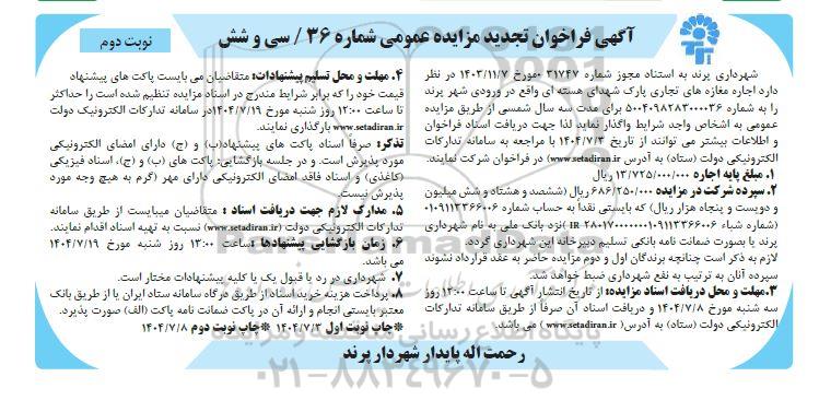 آگهی فراخوان تجدید مزایده عمومی شماره 36 سی و شش نوبت دوم ؟