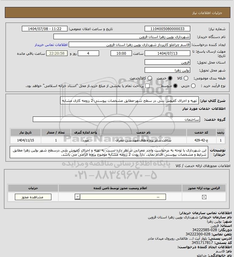 نام دستگاه خریدار:شهرداری بویین زهرا استان قزوین
