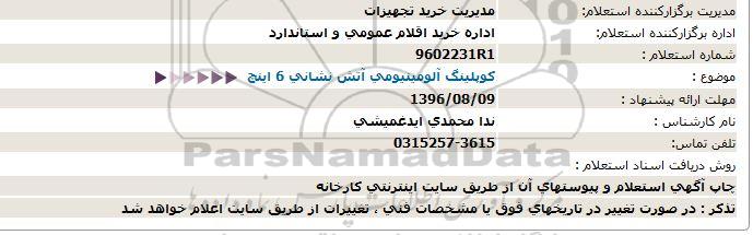استعلام كوپلینگ آلومینیومی آتش نشانی 6 اینچ , استعلام، استعلام كوپلینگ آلومینیومی آتش نشانی 6 اینچ