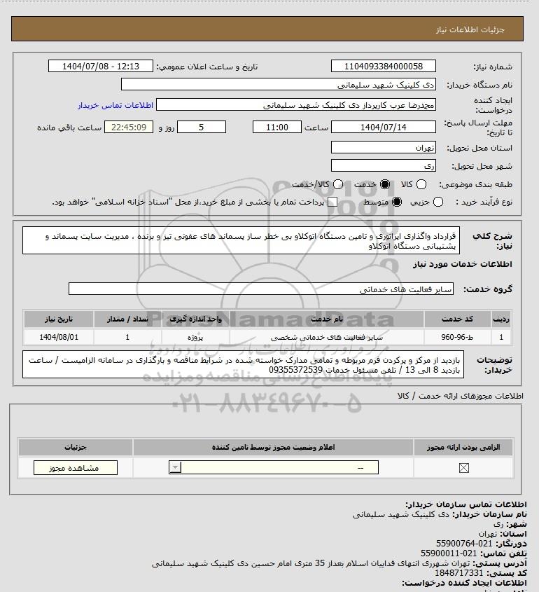 نام دستگاه خریدار:دی کلینیک شهید سلیمانی