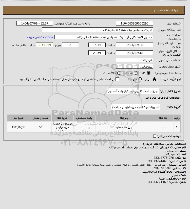 نام دستگاه خریدار:شرکت سهامی برق منطقه ای هرمزگان
