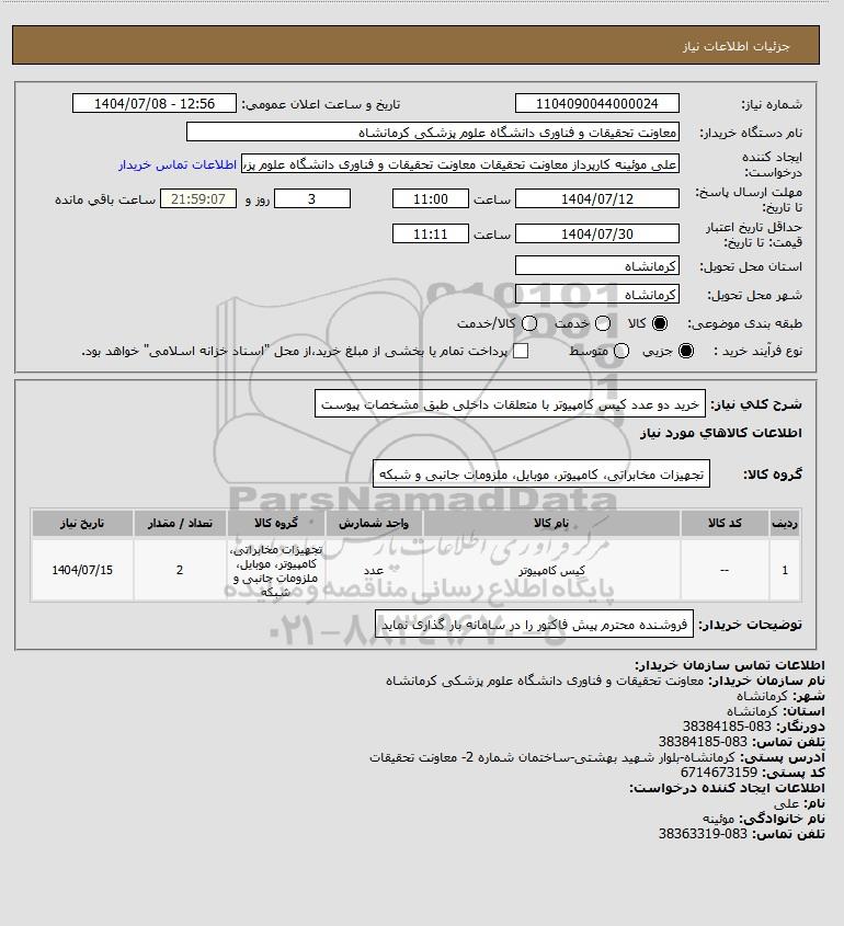 نام دستگاه خریدار:معاونت تحقیقات و فناوری دانشگاه علوم پزشکی کرمانشاه