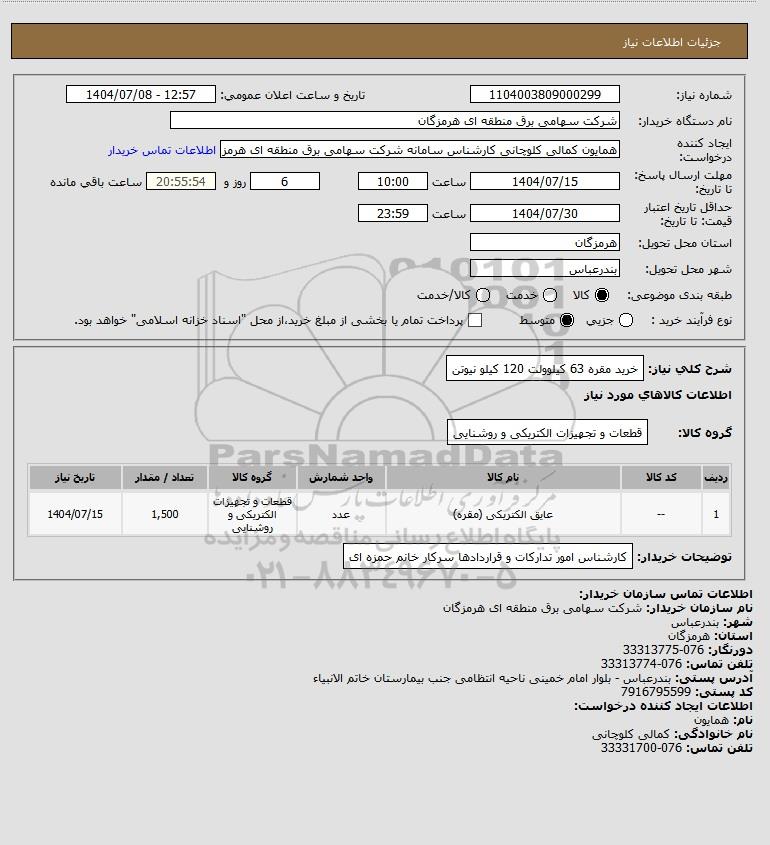 نام دستگاه خریدار:شرکت سهامی برق منطقه ای هرمزگان