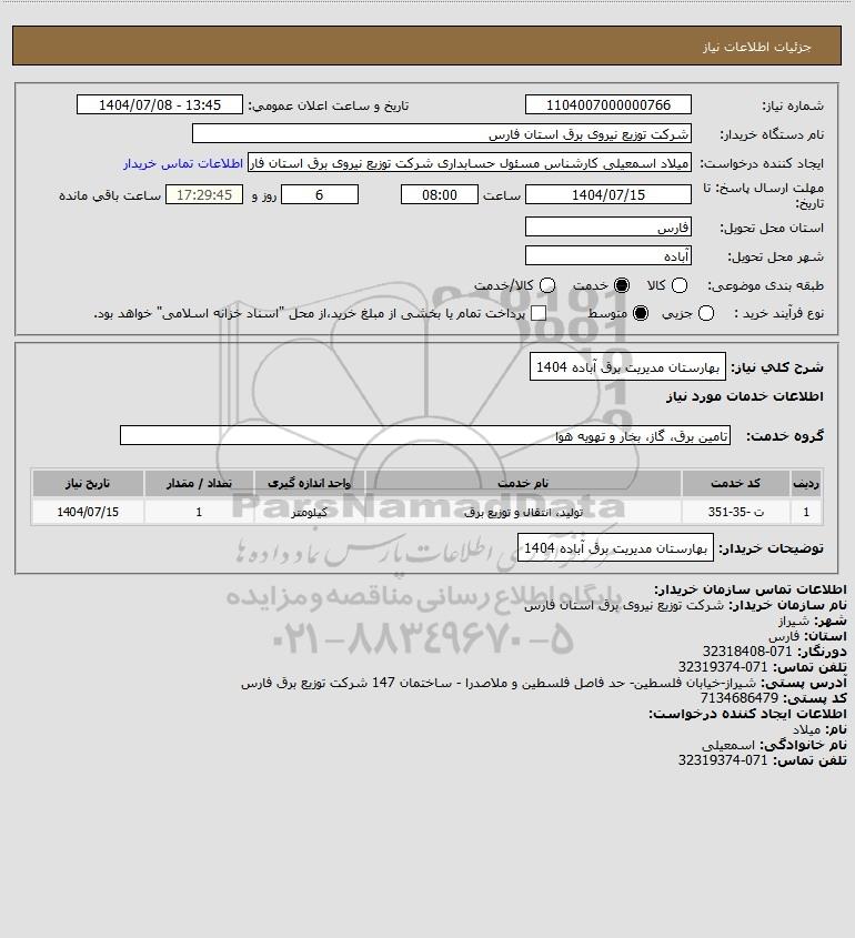 شرح کلی نیاز: بهارستان مدیریت برق آباده 1404