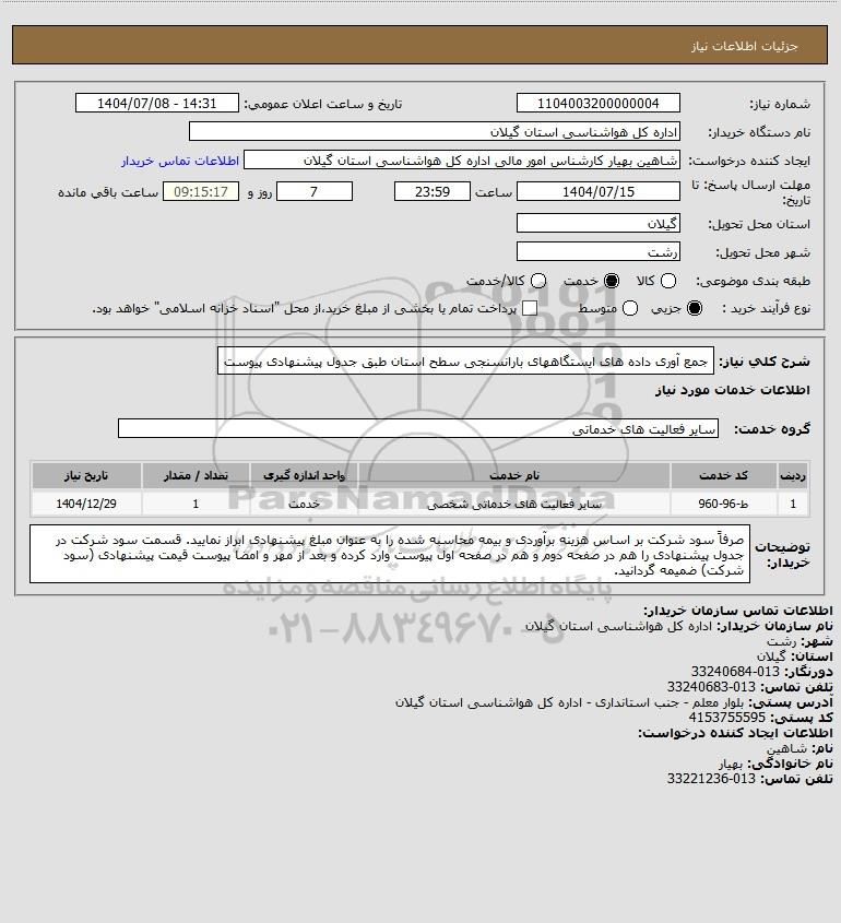 نام دستگاه خریدار:اداره کل هواشناسی استان گیلان
