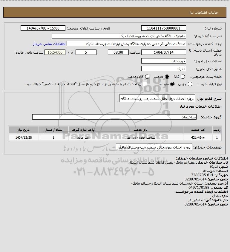 شرح کلی نیاز: پروژه احداث دیوار حائل سمت چپ روستای مافگه
