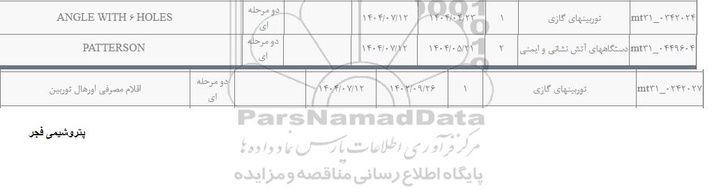 | mt31-0449604 | دستگاههای آتش نشانی و ایمنی | 2 | 1404.7.12 | دو مرحله ای | PATTERSON |