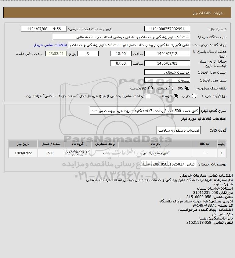 نام دستگاه خریدار:دانشگاه علوم پزشکی و خدمات بهداشتی درمانی استان خراسان شمالی