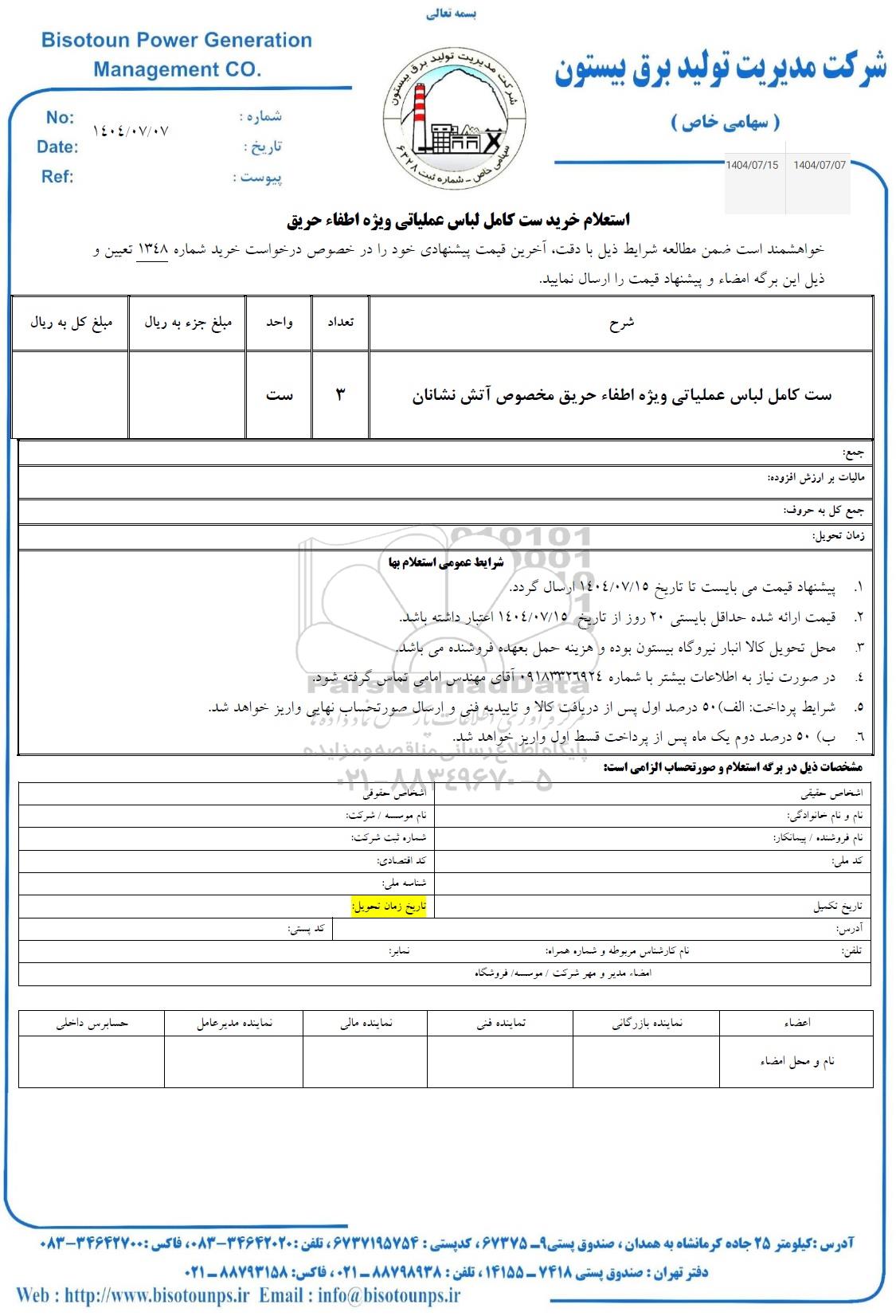 1- پیشنهاد قیمت می بایست تا تاریخ 1404.7.15 ارسال گردد.
