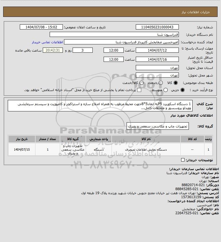 | 1 | -- | دستگاه نمایش اطلاعات تصویری | دستگاه | تجهیزات چاپ و عکاسی، سمعی و بصری | 1 | 1404/07/15 |
