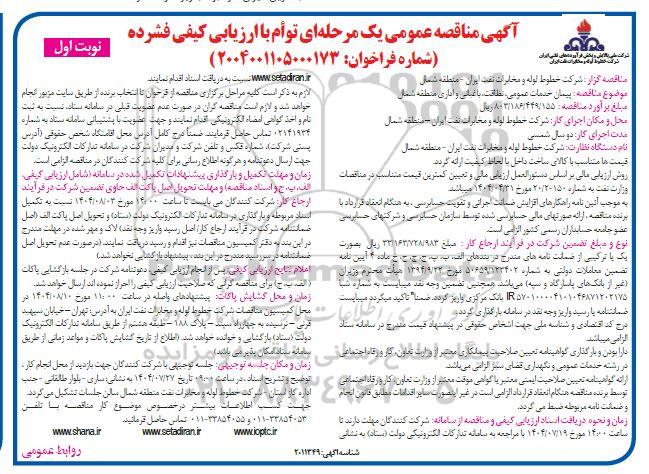 مناقصه گزار : شرکت خطوط لوله و مخابرات نفت ایران - منطقه شمال