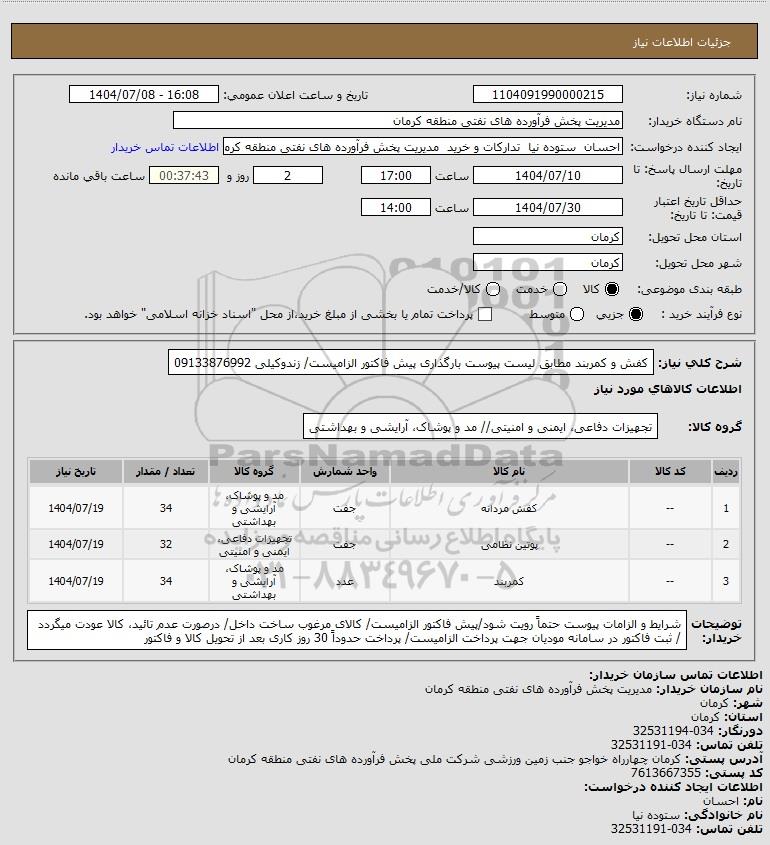 نام دستگاه خریدار:مدیریت پخش فرآورده های نفتی منطقه کرمان