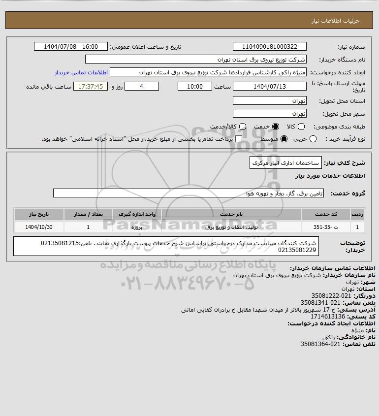 شرح کلی نیاز: ساختمان اداری انبار مرکزی