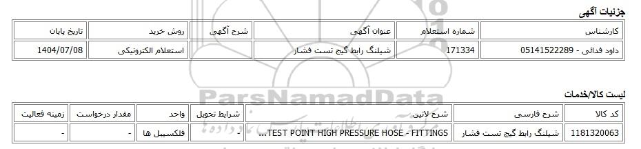 داود فدائی - 05141522289171334شیلنگ رابط گیج تست فشاراستعلام الکترونیکی1404/07/08
