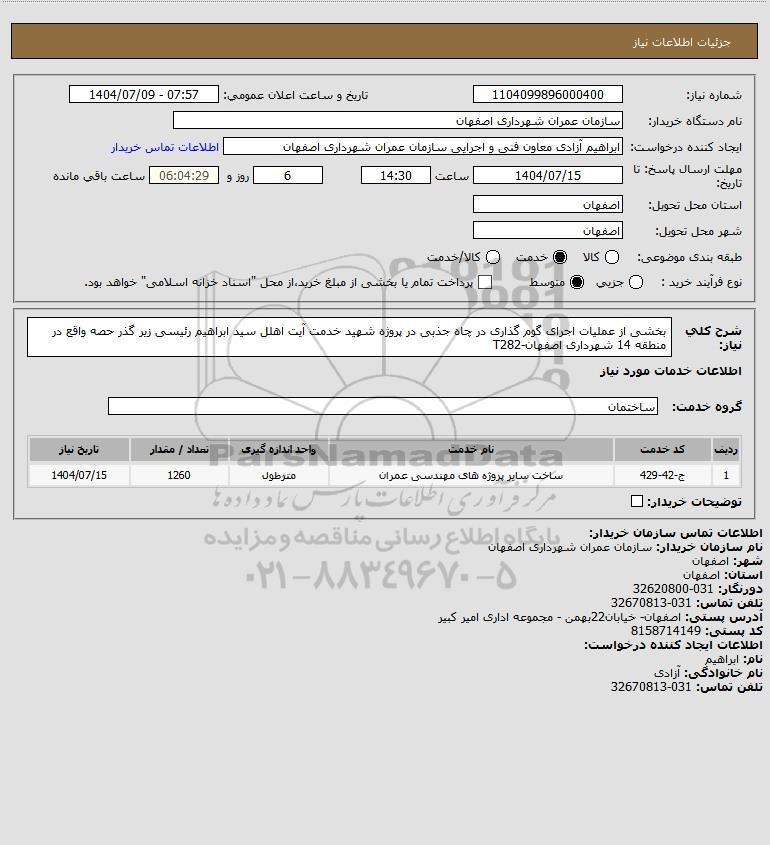 نام دستگاه خریدار:سازمان عمران شهرداری اصفهان