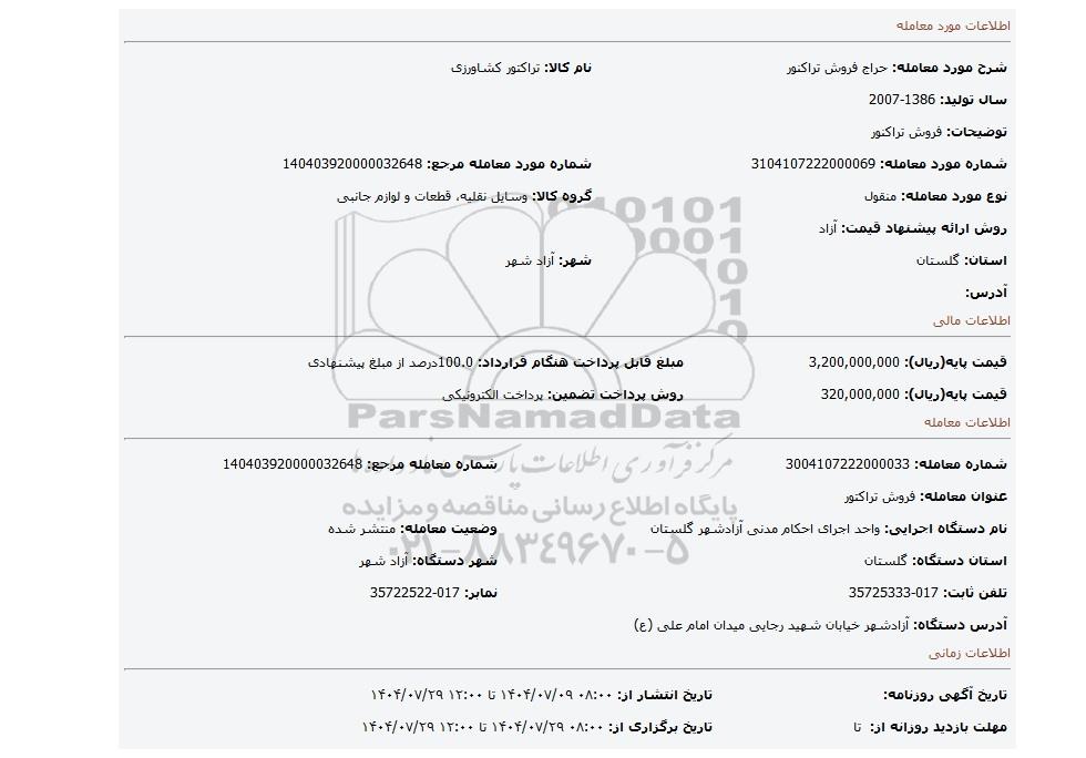 | عنوان معامله: فروش تراکتور | ||
