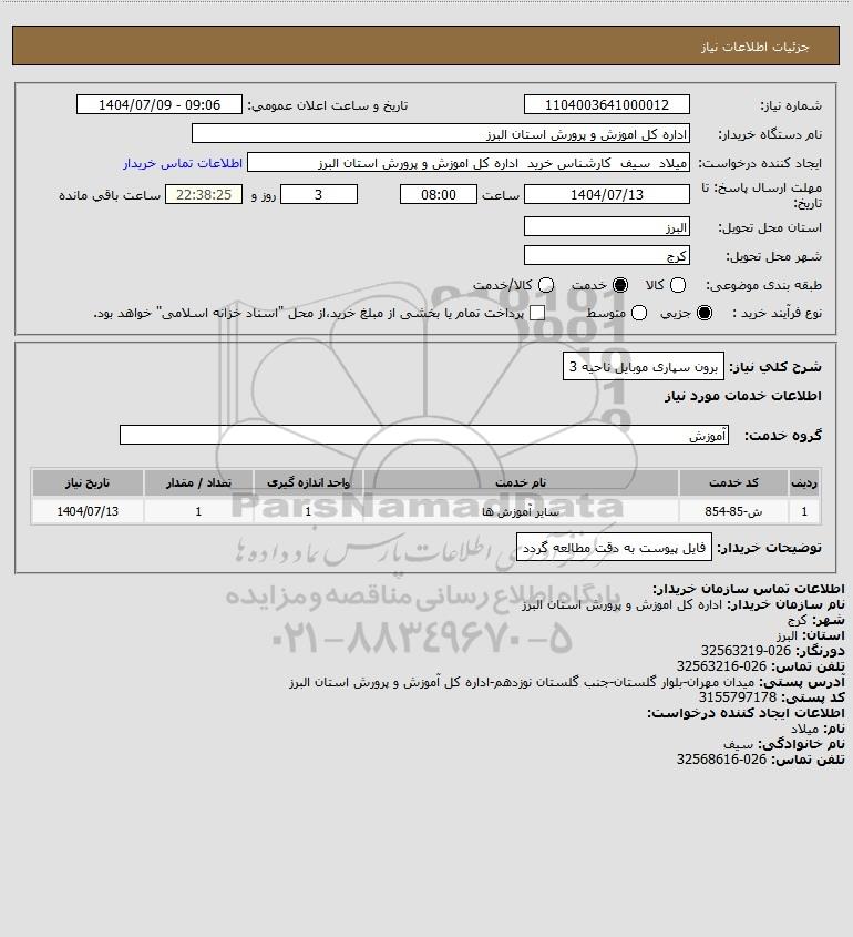شرح کلی نیاز: برون سپاری موبایل ناحیه 3
