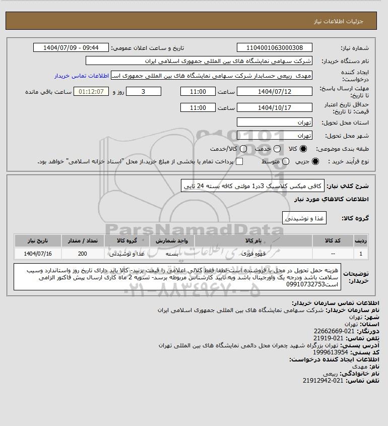 نام دستگاه خریدار:شرکت سهامی نمایشگاه های بین المللی جمهوری اسلامی ایران