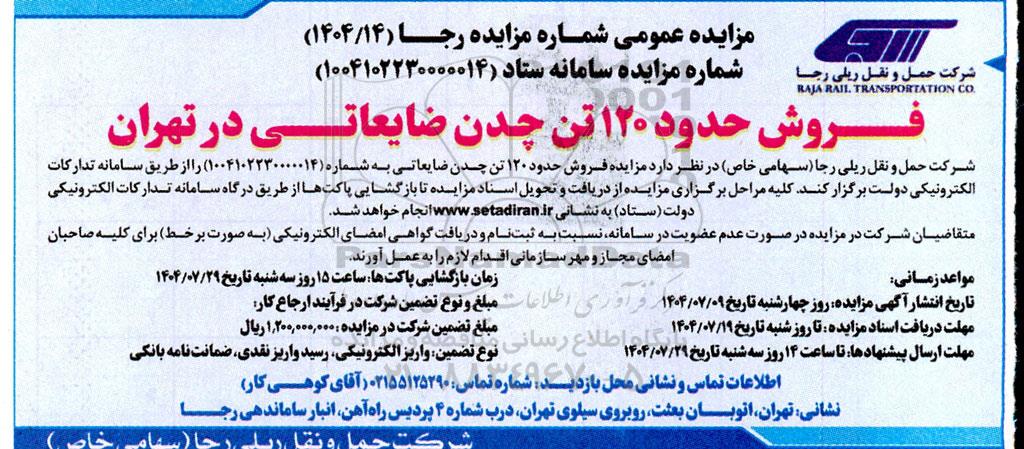 مزایده عمومی شماره مزایده رجا (1404.14)