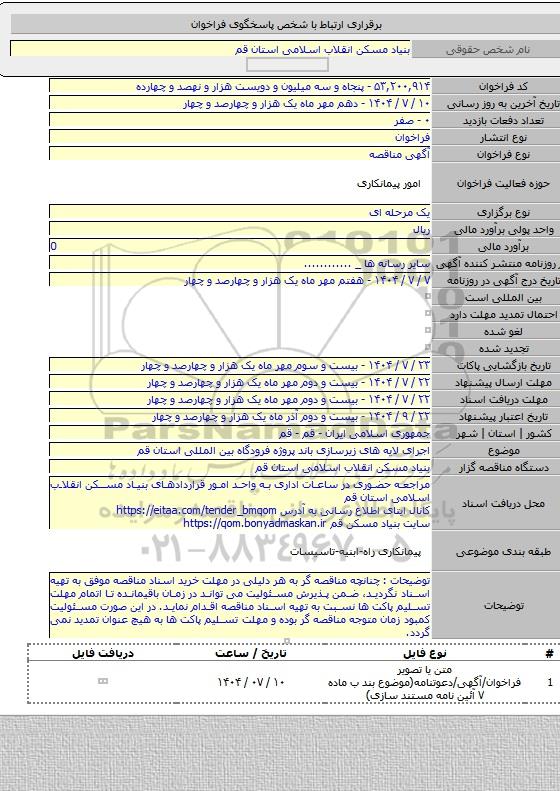 آخرین دریافت پیشنهادها و تاریخ بازگشایی پاکت‌ها و اطلاعات دقیق‌تر درباره شرایط این مناقصه و نحوه ارسال مدارک، و الزامات پروژه در اطلاعات تکمیلی این آگهی مناقصه درج شده است. لطفا ثبت نام کنید تا اطلاعات کامل را ببینید. علاقه‌مندان می‌توانند جهت دریافت اسناد و اطلاعات تکمیلی، مناقصه اجرای لایه های زیرسازی باند پروژه فرودگاه بین المللی استان قم با سامانه مناقصات و مزایدات ایران پارس‌نماد داده ها 88349670 تماس حاصل نمایند.