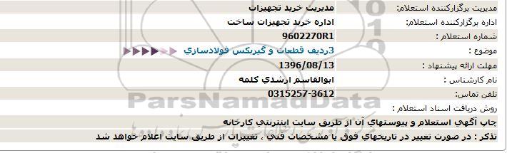 استعلام سه ردیف قطعات و گیربکس فولادسازی , استعلام، استعلام سه ردیف قطعات و گیربکس فولادسازی