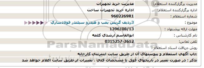 استعلام سه ردیف گریس و هیدرو سیلندر فولادسازی , استعلام، استعلام سه ردیف گریس و هیدرو سیلندر فولادسازی
