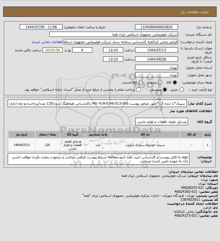 نام دستگاه خریدار:شرکت هواپیمایی جمهوری اسلامی ایران هما