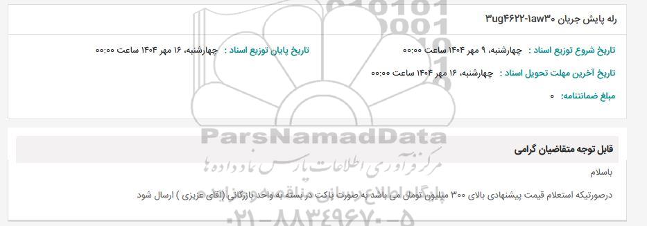 برای شرکت در مناقصه حتما از تصویر آگهی در سایت پارس نماد داده ها استفاده نمایید