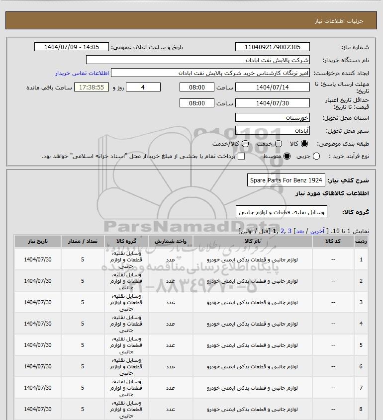 شرح کلی نیاز: Spare Parts For Benz 1924