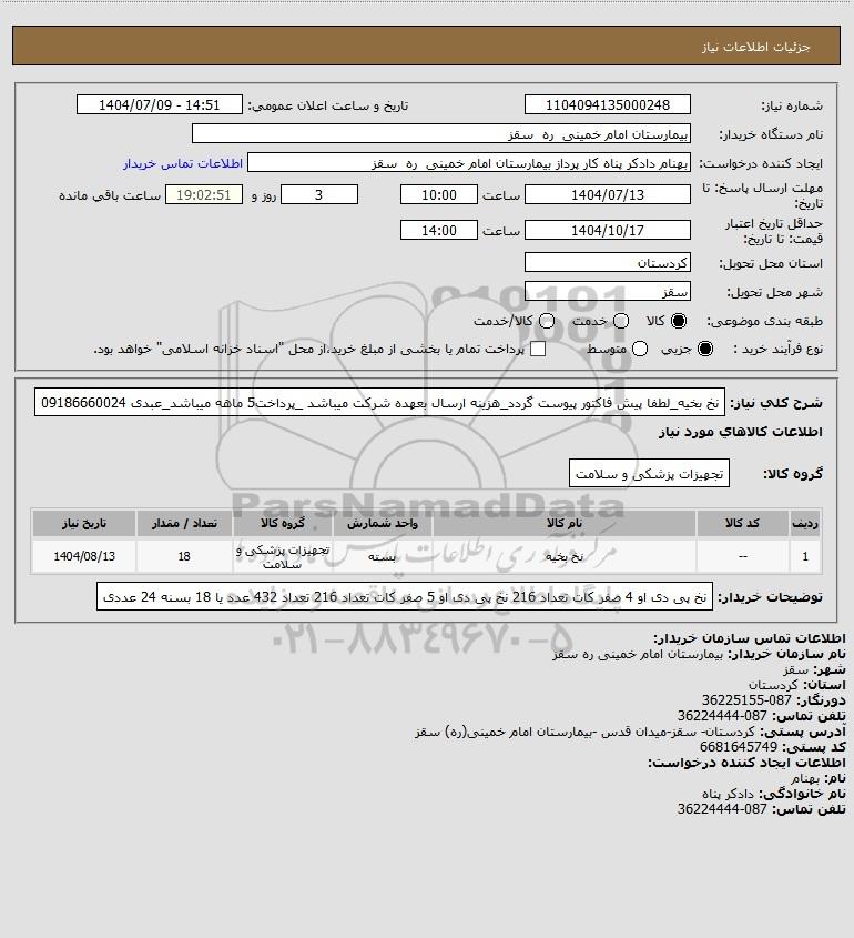 نام دستگاه خریدار:بیمارستان امام خمینی ره سقز