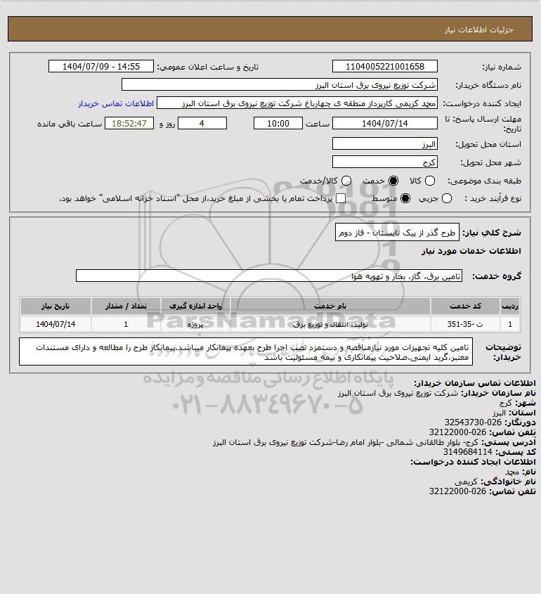 شرح کلی نیاز: طرح گذر از پیک تابستان - فاز دوم