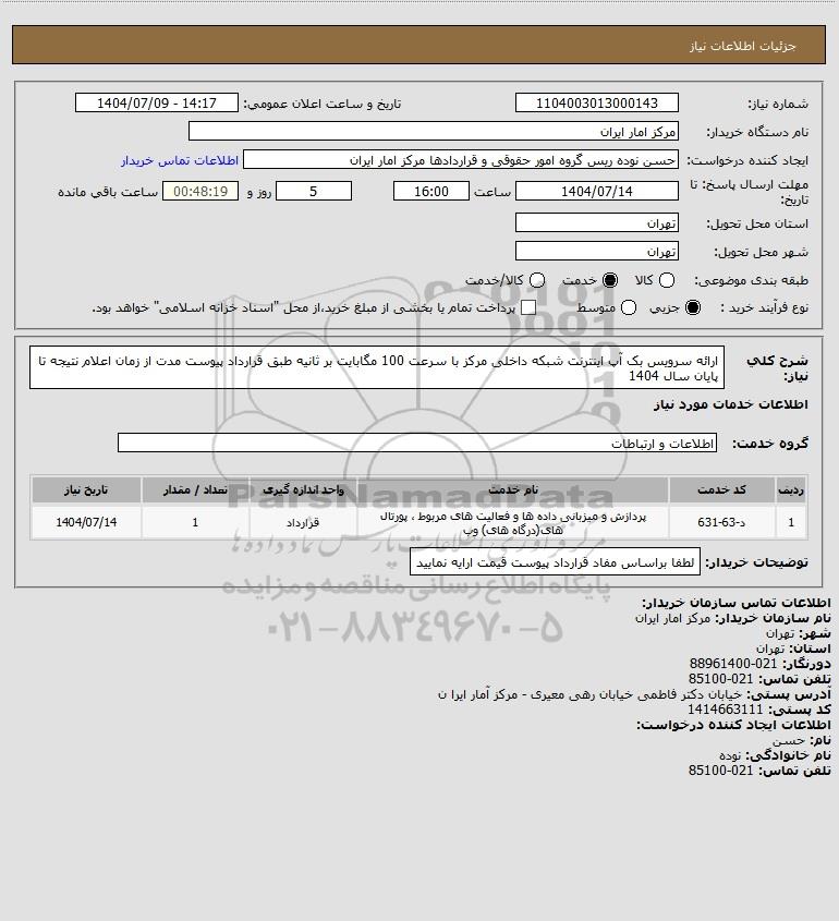 نام دستگاه خریدار:مرکز امار ایران
