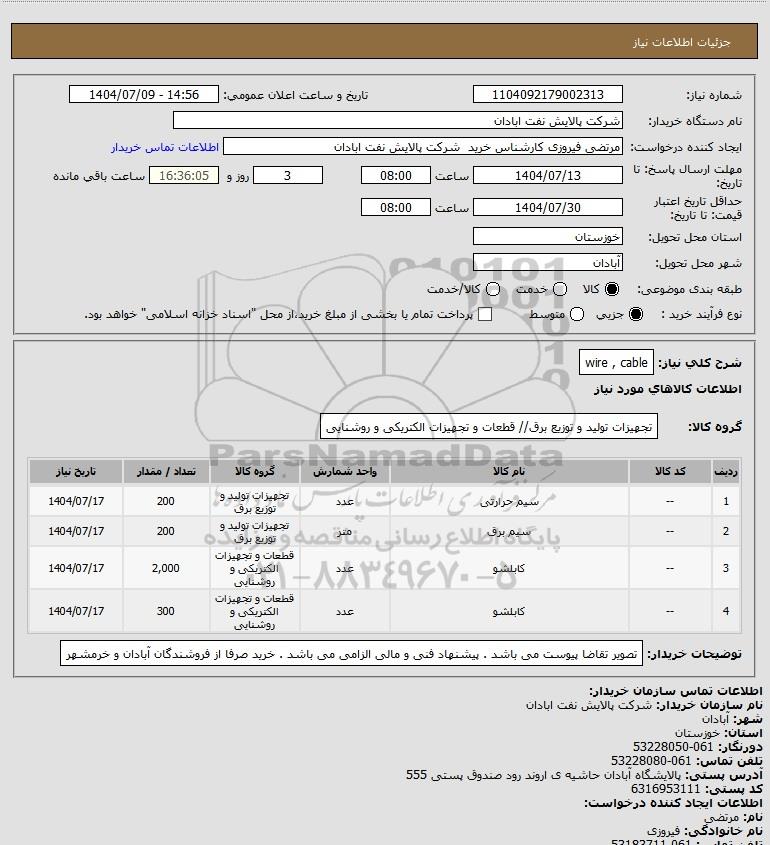 شرح کلی نیاز: wire , cable