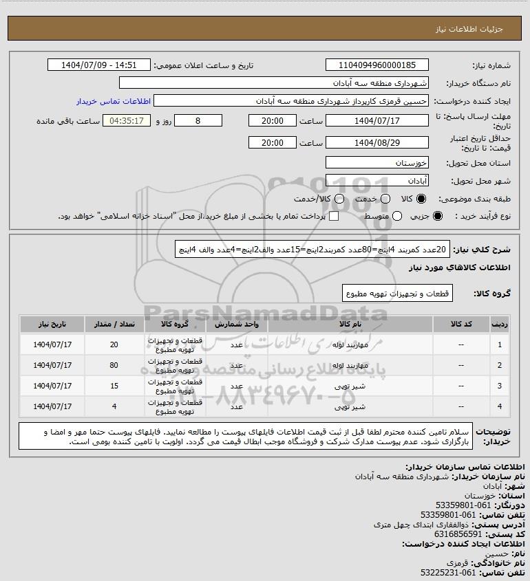 نام دستگاه خریدار:شهرداری منطقه سه آبادان
